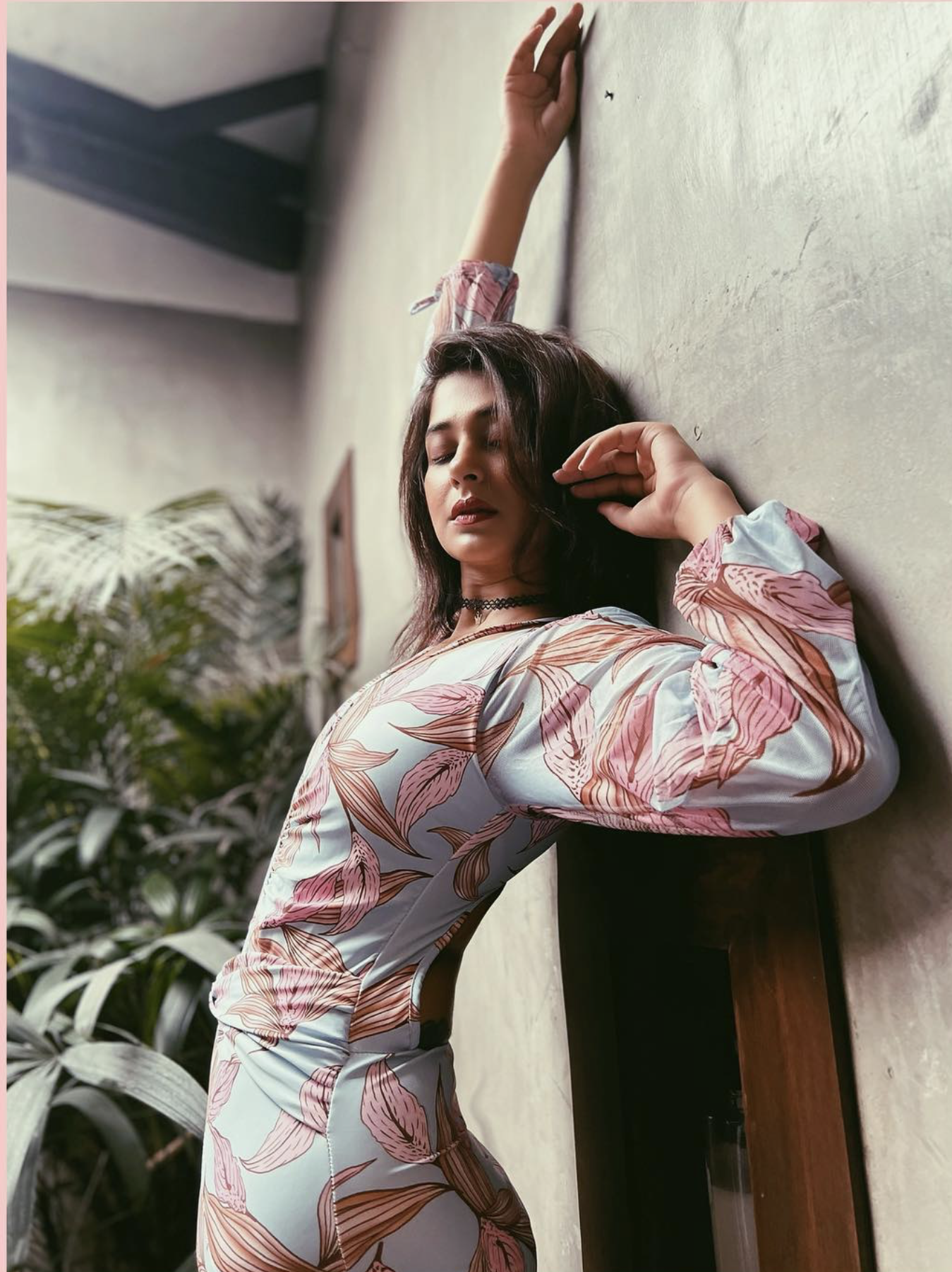 Jennifer Winget stuns in a floral bodycon dress, effortlessly blending elegance and charm with a graceful pose.