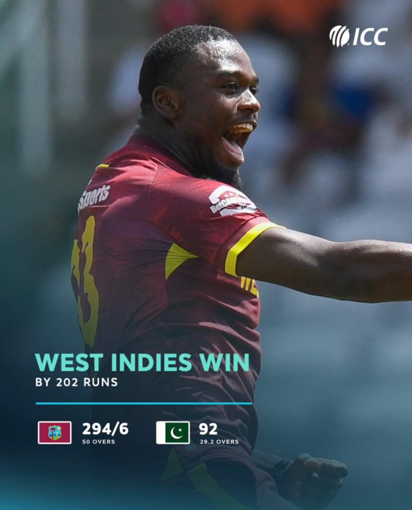 • The 202-run victory stands as the fourth largest for West Indies by runs in ODIs.